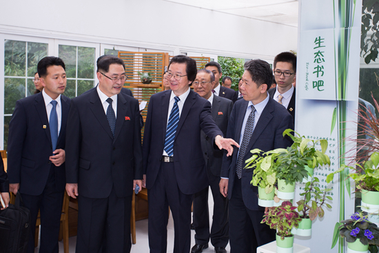 参观过程中,吴孔明向来宾介绍了中国农科院的研究所布局、学科组成,以及在基础研究和应用研究中取得的成就,并介绍了中国农科院与朝鲜科研机构以往在农业科技领域开展合作的情况。作科所所长刘春明,蔬菜花卉所所长孙日飞,植保所所长周雪平,加工所所长戴小枫分别介绍了作物栽培、种质资源保护与利用、蔬菜品种多样性、花卉景观设计、生物防治、绿色安全生产、马铃薯品种品系、马铃薯主粮化食品等领域的农业科技成果。现代农业科技展示园负责人魏灵玲介绍了园区的智能控制技术、LED植物工厂、无土栽培、立体化水耕栽培等相关技术和应用示范。